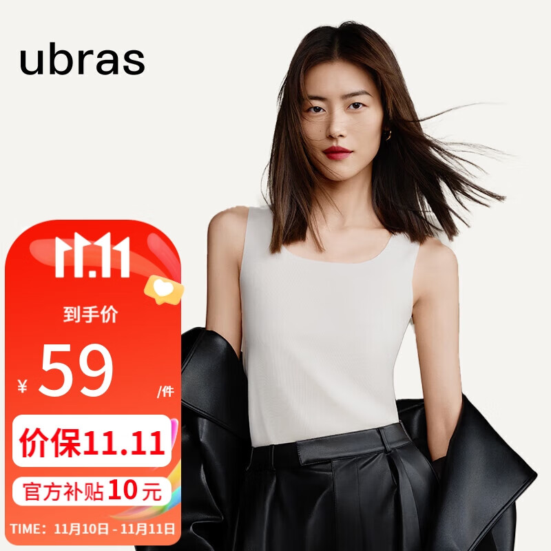 ¥59 ubras【刘雯同款】无尺码u领无痕四季肌底背心女内搭吊带打底外穿上衣 69