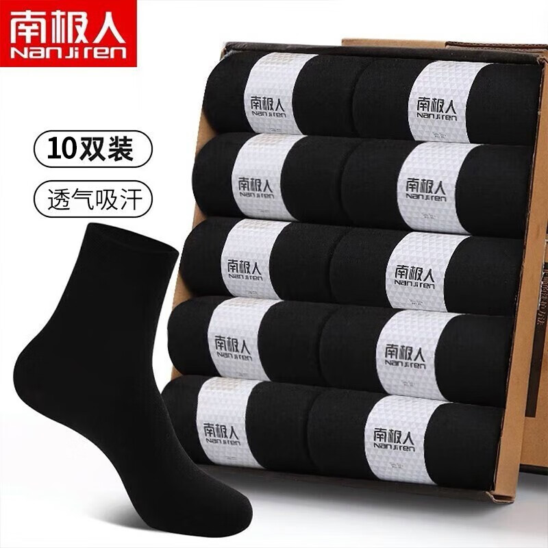 ¥8.99 南极人袜子男士中筒袜秋冬季运动纯色透气吸汗百搭篮球休闲袜 黑中筒-10双装 9.9