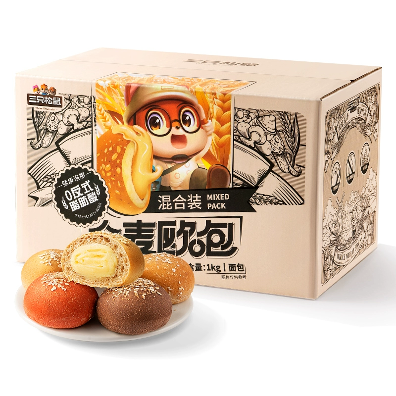 ¥12.9 【三只松鼠】全麦夹心欧包1斤10个 13.9