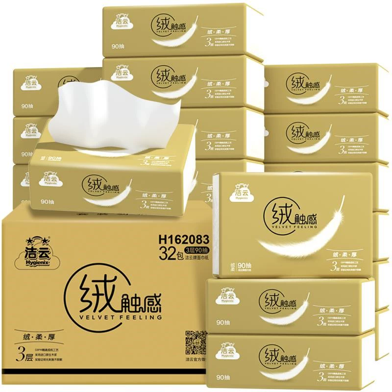 ¥24.9 0.64/包!洁云绒触感抽纸3层90抽×32包 39.9
