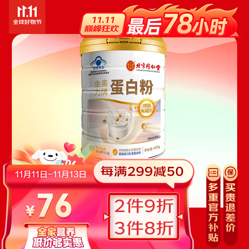 ¥85 内廷上用 北京同仁堂蛋白粉乳清蛋白粉增强免疫力保健品免疫球蛋白小蓝帽保健食品400g营养品送礼好礼 95