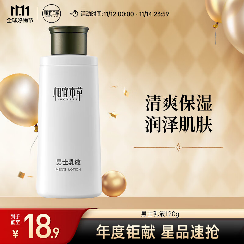 ¥18.78 相宜本草 男士乳液120g( 保湿清爽 控油补水 护脸润肤霜) 18.9