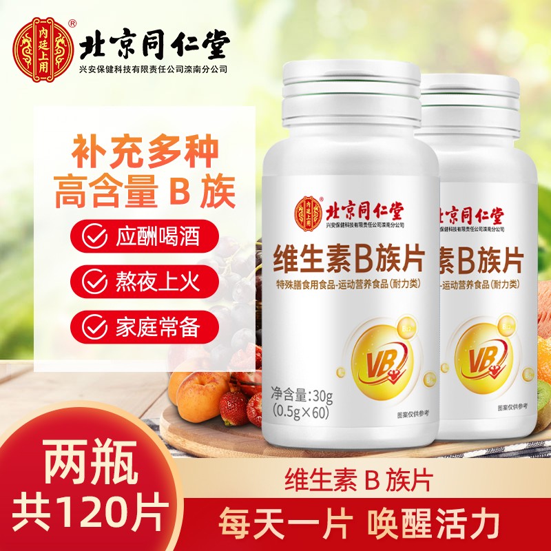 ¥29.9 内廷上用北京同仁堂多种B族维生素 VB维生素B1B2B6B12 60片/瓶*2瓶 79.9
