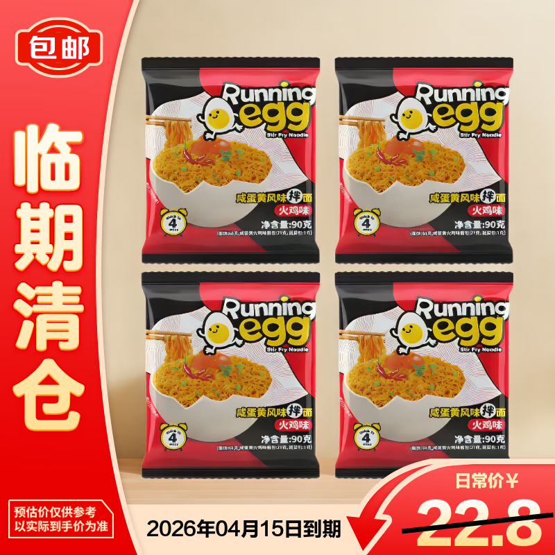奔跑吧蛋蛋咸蛋黄风味拌面火鸡味90g*4,首单仅需2.9元