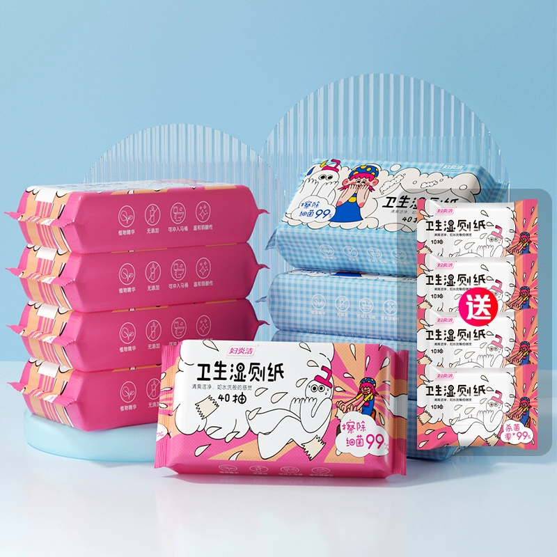 ¥11.9 妇炎洁湿厕纸40抽*3包+送10抽 26.9