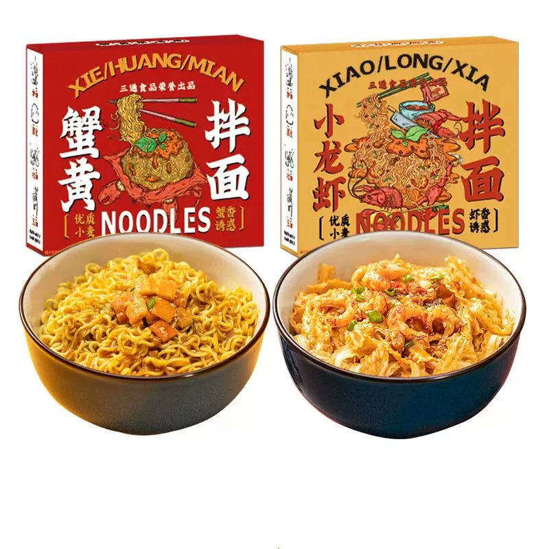 ¥19.99 拍4件!三通食品小龙虾蟹黄拌面4盒*106g 39.99