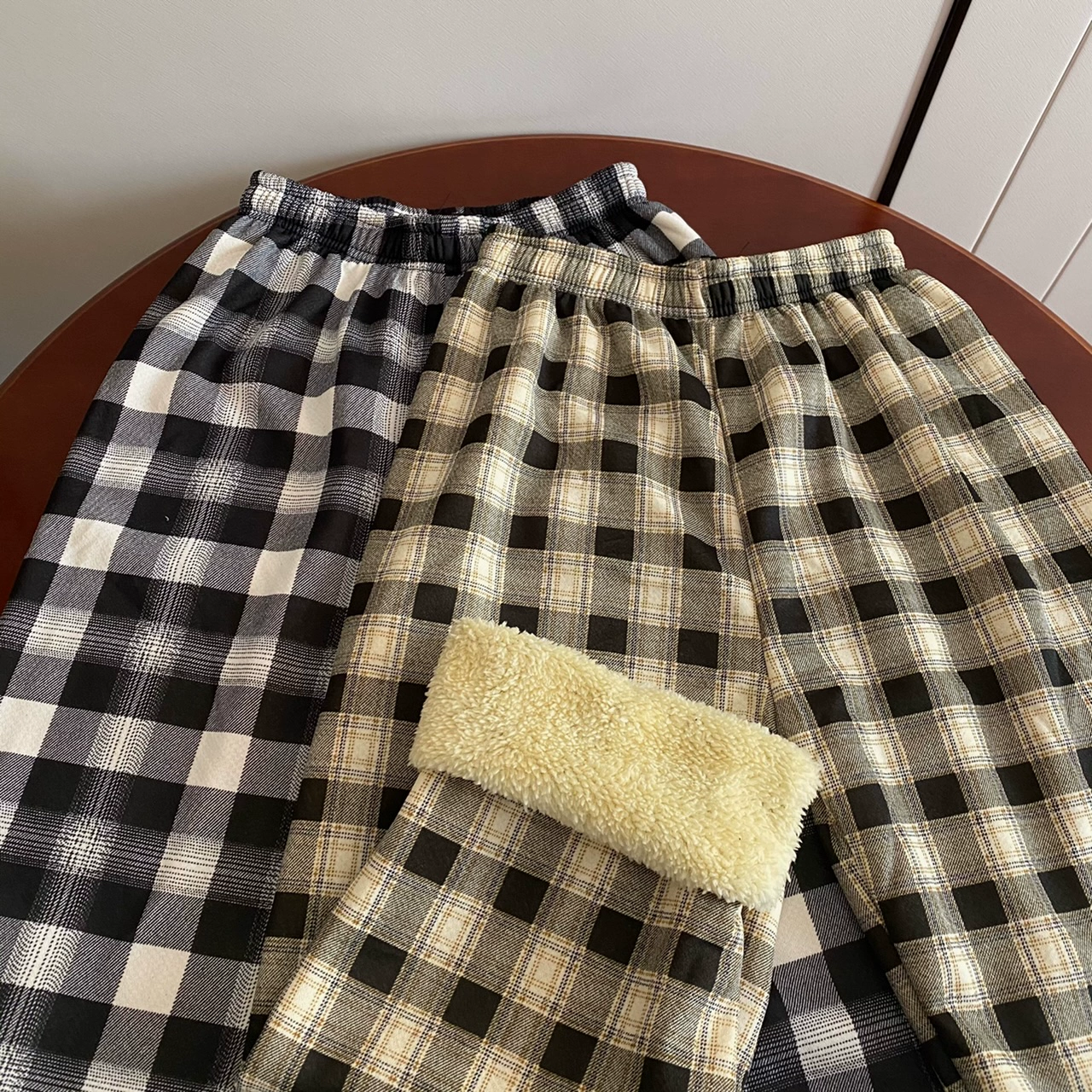 ¥39.9 拍2件!加厚羊羔绒格子直筒阔腿裤 119.9