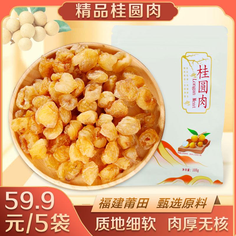 ¥59.90 福建莆田大果桂圆肉100g*5袋无核新鲜龙眼肉干即食泡水可搭配花茶 59.90