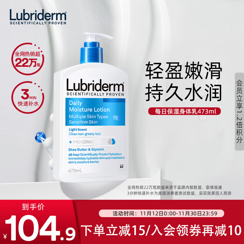 ¥111 Lubriderm露比黎登每日保湿身体乳补水润肤露润肤乳淡香清爽不粘腻473ml 121