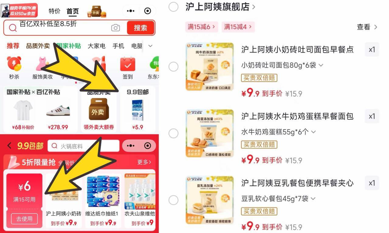 沪上阿姨面包9.9任选,小程序领15-6券到手更划算