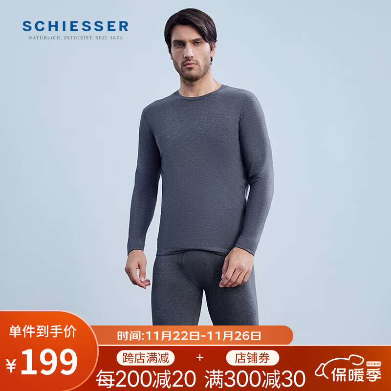 ¥199 舒雅(Schiesser)男女士情侣秋衣裤内衣精梳棉薄绒棉毛衫裤保暖套装E5/20730W 男士20730W深花灰7500 XL 219