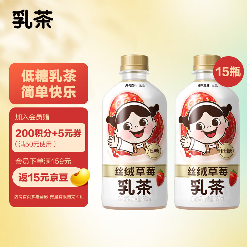 ¥59.9 元气森林出品乳茶 低糖奶茶饮料整箱装360ml*15 丝绒草莓 79.9