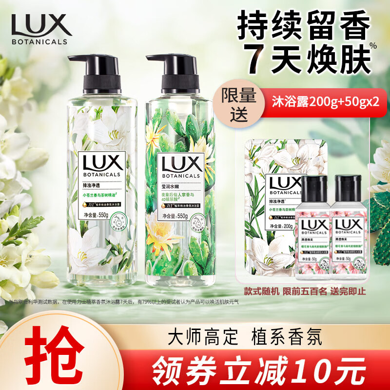 ¥64.9 力士(LUX)植萃精油香氛沐浴露套装小苍兰550g+仙人掌550g送50gX2持久留香 74.9