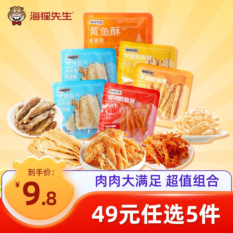 ¥14.9 海狸先生海味即食解馋独立礼包零食鱿鱼丝烤鱼片大连特产 黄鱼酥1袋+鱿鱼条3袋+鳕鱼片2袋 15.9