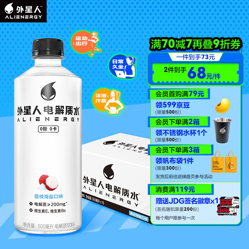 ¥64.4 外星人电解质水荔枝海盐味 含维生素无糖饮料箱装500mL*15瓶 79.4