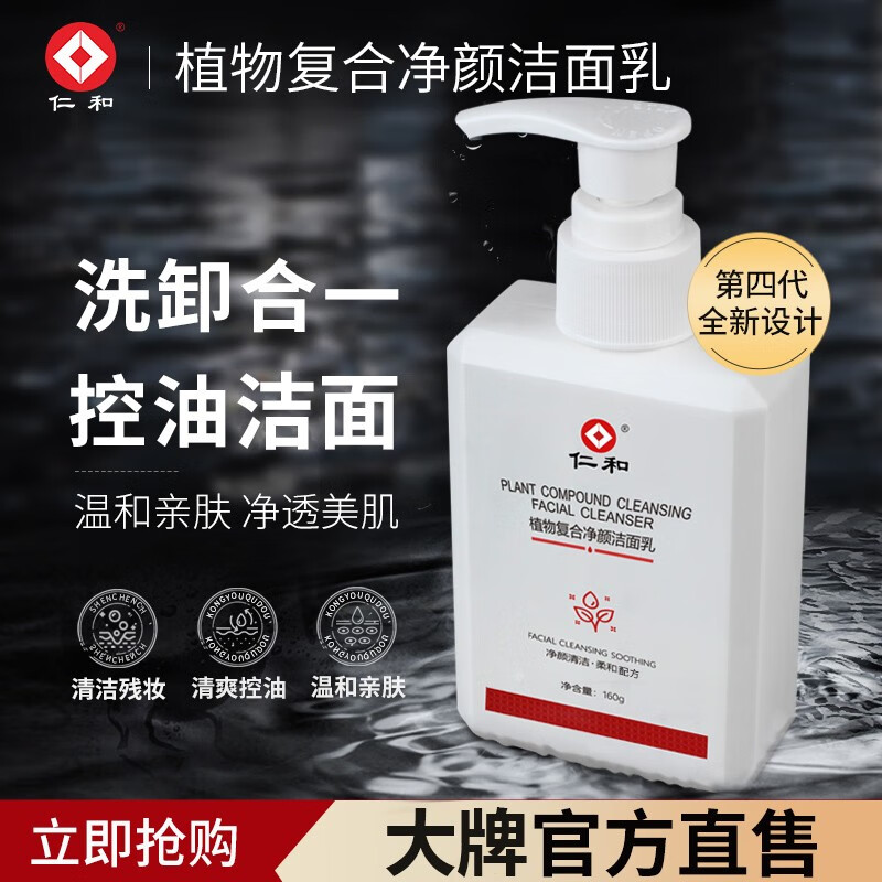 ¥14.9 仁和 植物复合净颜洁面乳控油清洁男女洗面奶温和 控油净痘1瓶装 49.9