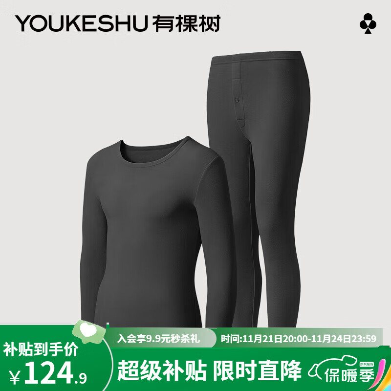 ¥124.9 有棵树C级保暖内衣男士秋衣秋裤女士套装情侣加绒加厚冬季打底棉毛衫 神秘黑【男款】(建议拍大一码) XL 139.9