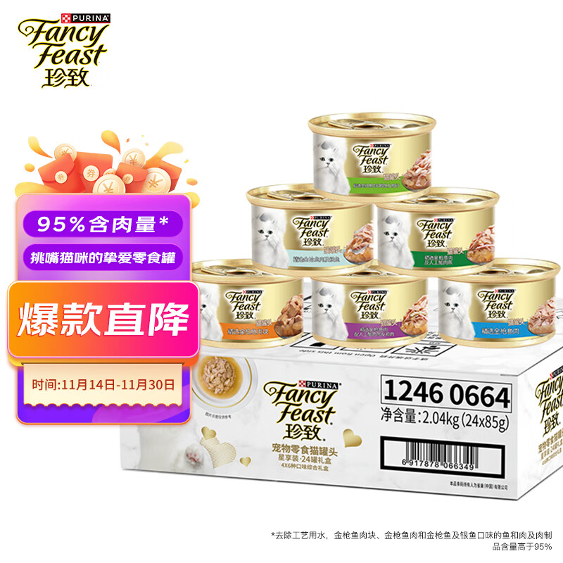 ¥120 珍致猫罐头猫零食成猫幼猫罐头85g*24罐 原装进口金罐混合口味礼盒 140