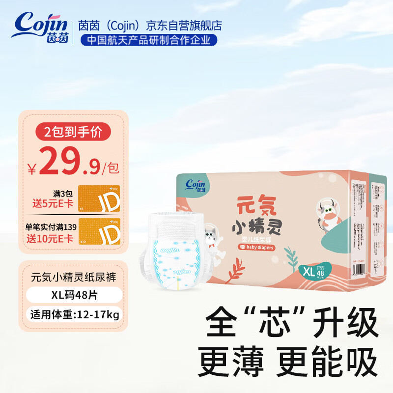 ¥46.85 茵茵元気小精灵婴儿纸尿裤柔薄透气通用尿不湿XL码48片(12-17kg) 46.95