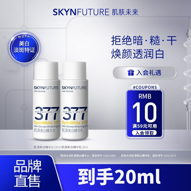 ¥9.9 肌肤未来(SKYNFUTURE)肌源护肤旅行装淡化斑点滋润护肤套装便携出游男女 377美白水10ml+乳10ml 29.9