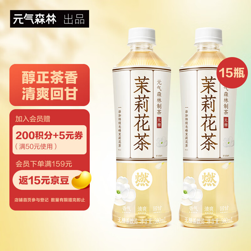 ¥42.9 元气森林燃茶茉莉花茶无糖茶饮料茉莉花茶整箱500mLX15瓶 62.9