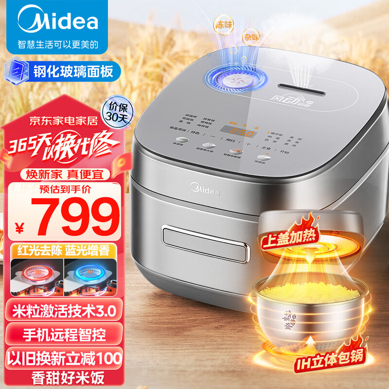 ¥699 美的(Midea)风动稻香Pro电饭煲电饭锅4L立体IH电磁加热一键双层快速煮家用智能电饭煲MB-HS433(3-8人) 899