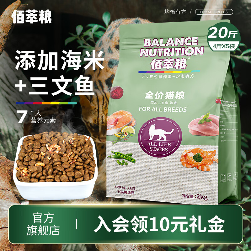 ¥179 佰萃粮猫粮 美短蓝猫缅因全阶段通用三文鱼海米猫主食 10kg(2kg*5袋) 209