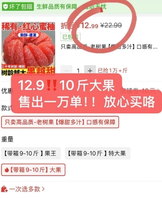 在售价22.99元,领10元券,实付12.99元包邮10斤大果!!今天结束;