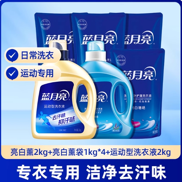 49.9元包邮!蓝月亮洗衣液亮白增艳运动16斤组合