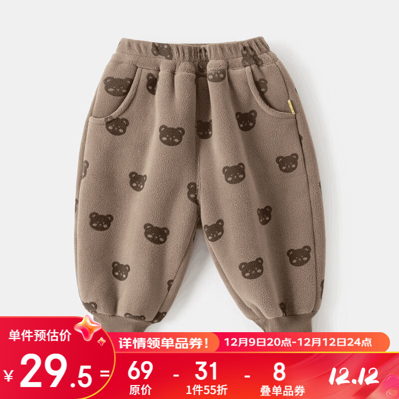 ¥64 嘟嘟家儿童加绒长裤秋冬宝宝秋冬保暖裤婴儿裤子新款男童童装洋气 咖色小熊 90 69