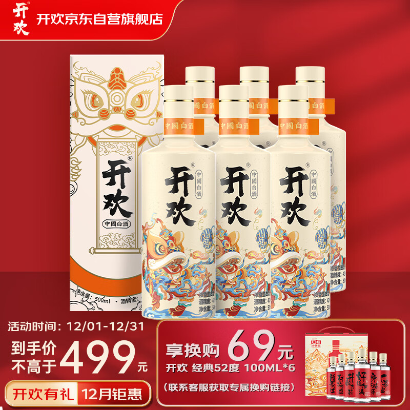 ¥469 开欢初代系列 浓香型白酒 42度 500ml*6瓶 整箱装 499