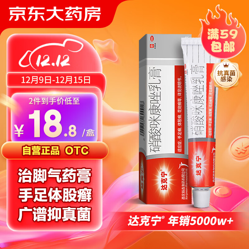 ¥20.1 达克宁软膏硝酸咪康唑乳膏20g去脚气药止痒脱皮烂脚丫真菌感染止痒脚气膏脚痒杀菌止痒膏治疗脚气药膏藓膏 23.1