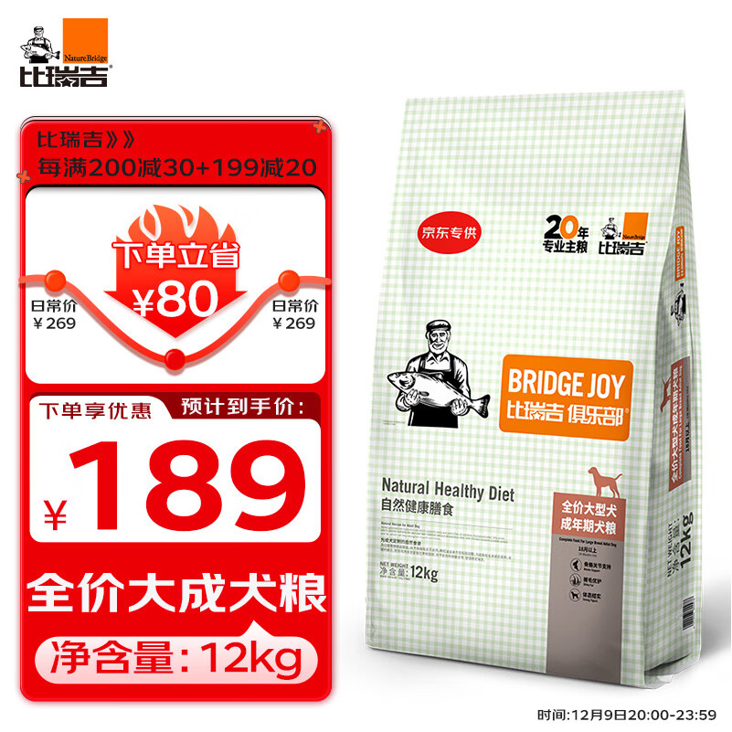 ¥219 比瑞吉俱乐部系列大型犬成犬粮通用狗粮12kg金毛萨摩耶拉布拉多 239