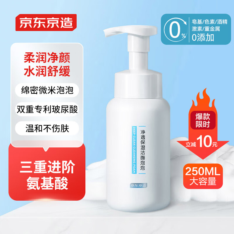 ¥37.9 京东京造氨基酸洁面泡泡慕斯洗面奶 250ml 0皂基温和不刺激保湿云朵泡沫 57.9