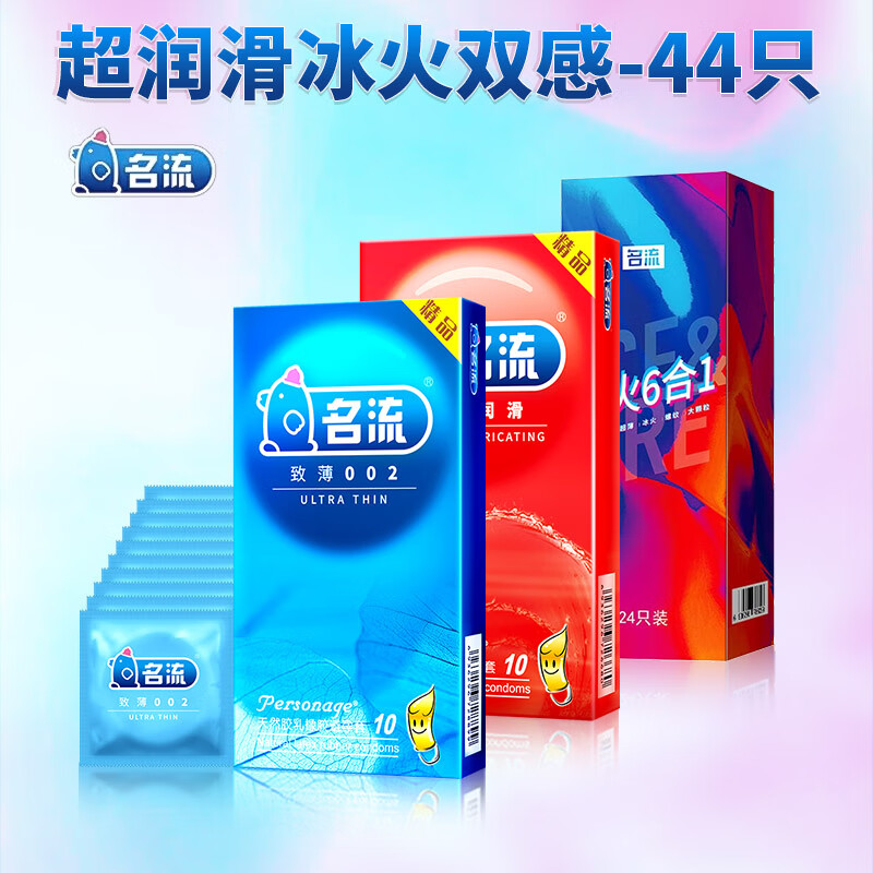 ¥24.9 名流 避孕套女专用 女戴安全套 超薄持久避孕套润滑大颗粒螺纹名流男用套子 成人计生情趣用品RN1 【共44只】冰火六合一+润滑+超薄002 29.9