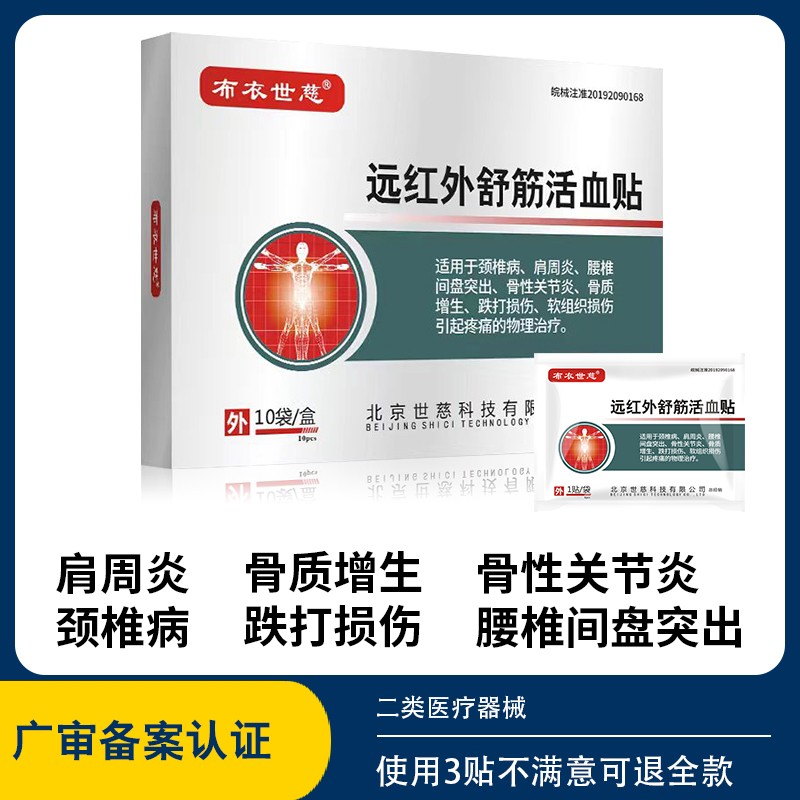 ¥79 布衣世慈肩周炎贴膏颈椎病腰椎间盘突出贴膏骨质增生骨性关节跌打损伤软组织损伤引起疼痛贴 1盒10贴 179