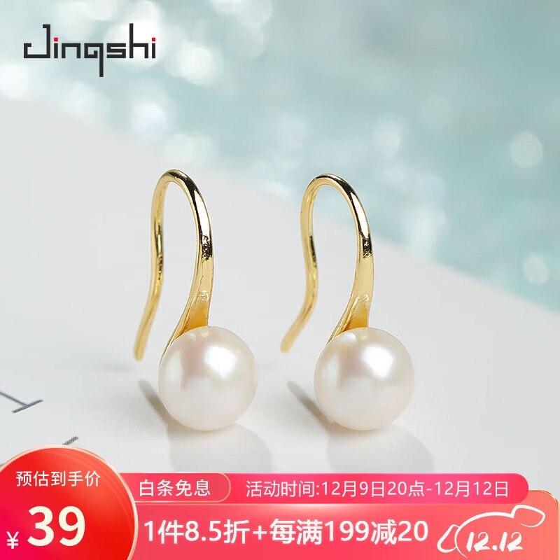 ¥49 景饰 星耀珍珠耳环耳钉馒头高跟鞋款淡水珍珠耳饰7-8mm送爱人送女友 59