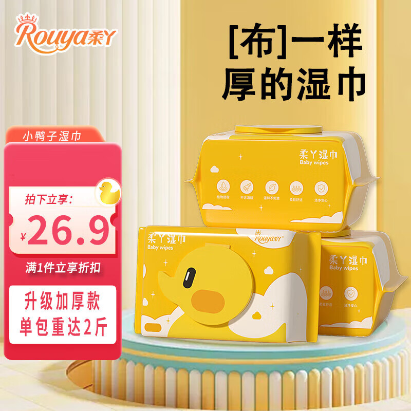 ¥19.9 柔丫(rouya)婴儿湿巾纸新生手口专用屁宝宝幼儿小童湿纸巾便携家用实惠装大包 湿巾家庭装72抽*3包 26.9