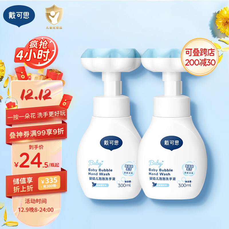 ¥39 戴·可·思儿童宝宝洗手液 植物泡沫洗手液 泡沫洗手液 300ml*2(两瓶装) 59