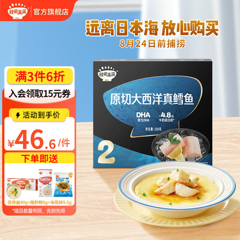 ¥84.9 秋田满满大西洋真鳕鱼230g去骨刺儿童鳕鱼零食无添加额外食盐糖DHA三文鱼 【买3件钜划算】真鳕鱼230g 99.9