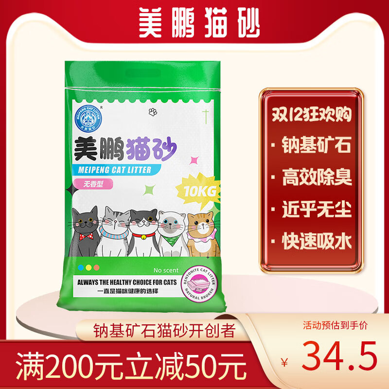 ¥44 美鹏猫砂2.72kg破碎型钠基膨润土猫砂 原味矿砂除臭低尘强力结团一箱四包 原味10kg*1袋 49