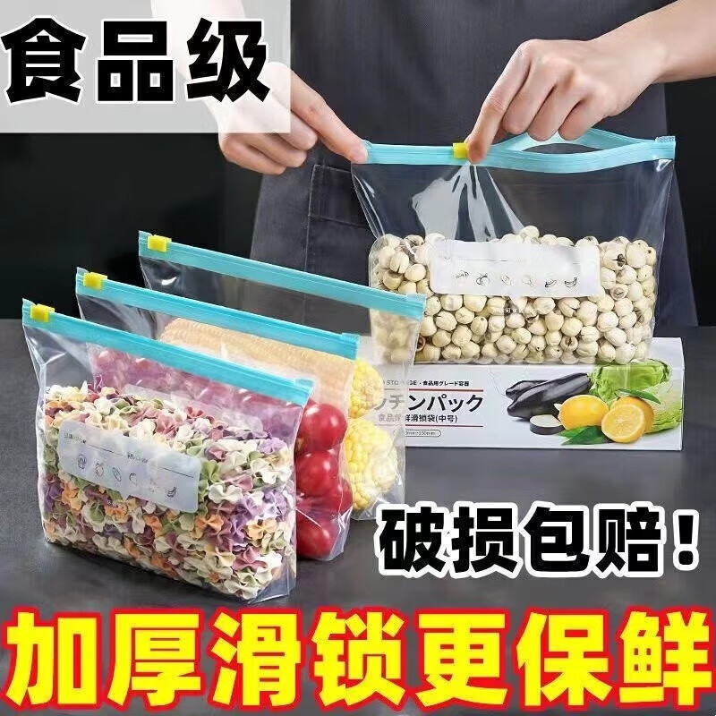 ¥13.9 保鲜袋密封加厚家用食品级冰箱冷冻专用拉链式密实袋带封口 45只【小中大】 39.9