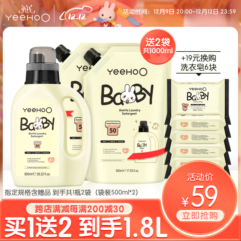 ¥49 英氏婴儿洗衣液宝宝专用洗衣皂液儿童内裤洗液天然酵素去污柔护洗衣液 柔护洗衣液800ml*1+500ml*2 59