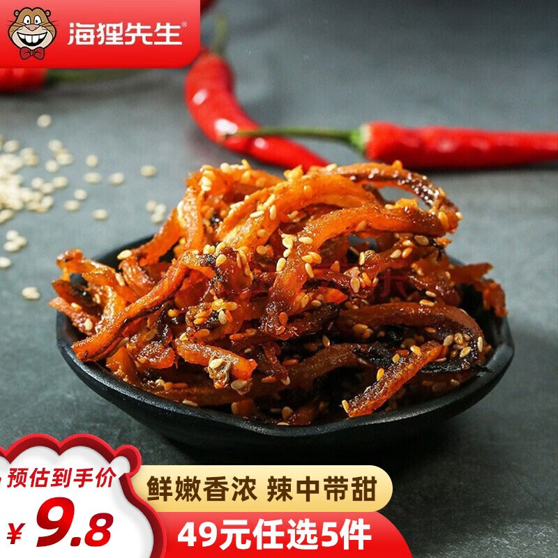 ¥10.9 海狸先生 香辣鳗鱼丝辣条小鱼仔零食小鱼干即食装海鲜麻辣海味零食 鳗鱼丝80g*1袋 11.9