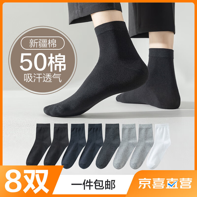 ¥7.9 东方缘男士8双袜子新疆棉舒适耐磨棉袜透气吸汗中筒袜 混色8双 均码 9.9