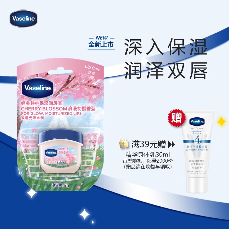 ¥19.9 凡士林润唇膏7g浪漫樱花 唇膜润唇晶冻保湿补水去死皮 24.9