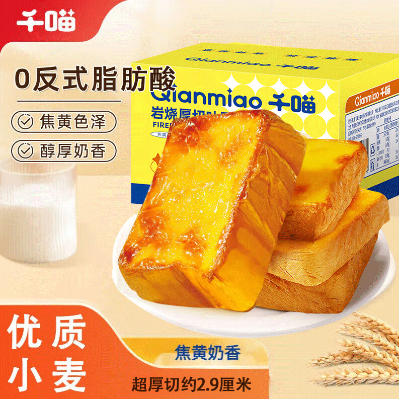 ¥6.8 千喵水岩烧厚切吐司休闲食品下午茶面包零食糕点点心早餐学生 岩烧厚切吐司285g*1箱 9.8