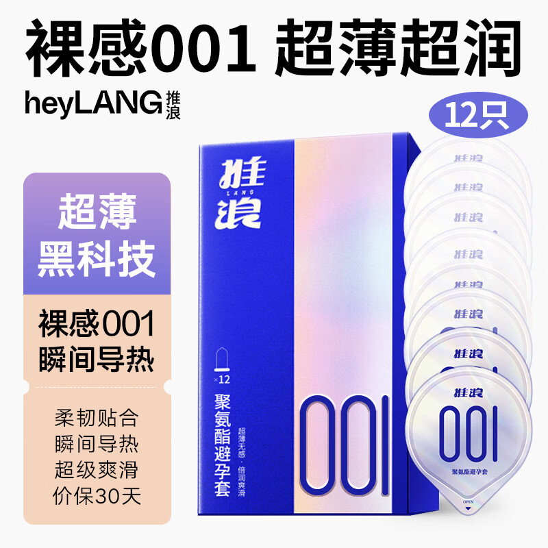 ¥59.9 推浪 京东自有品牌 001超薄避孕套 安全套 聚氨酯男女用套套 计生成人用品 12只 89.9