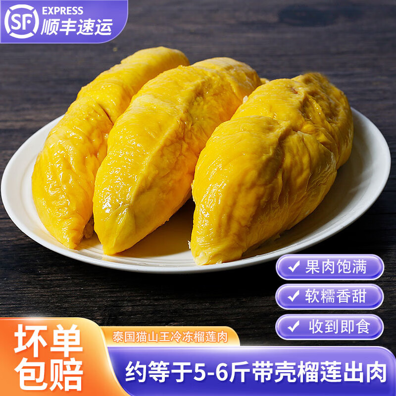¥109.9 鲜闻果新鲜冷冻榴莲肉泰国猫山王榴莲肉【JD顺丰随机发货】1 【分享装】泰国猫山王冻肉900g 139.9