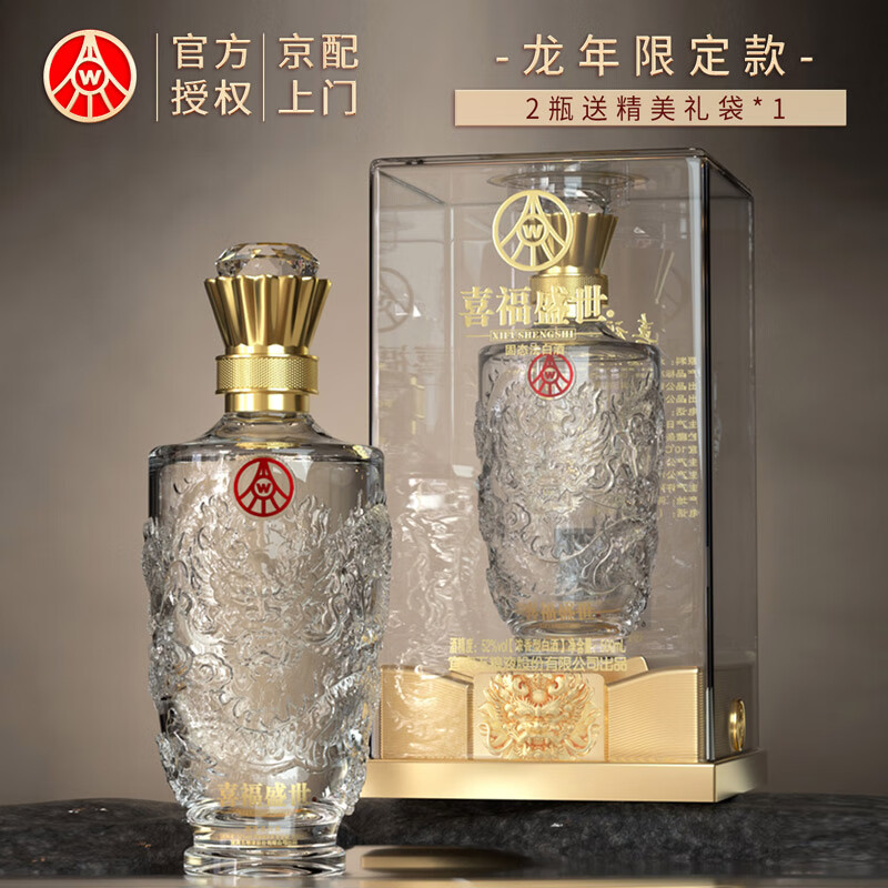 ¥419.9 五粮液股份 官方授权 52度优级 浓香型白酒喜福盛世 52度 500mL 2瓶 龙腾鸿运双支装 1599.9